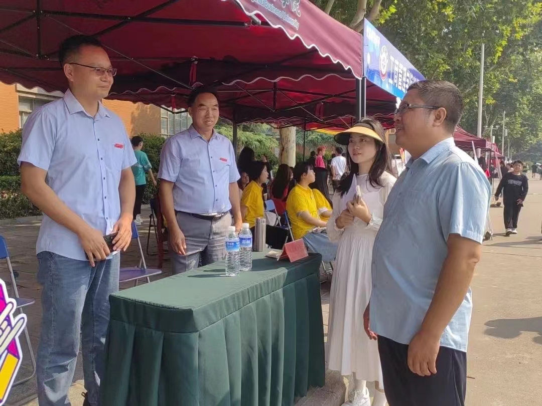 我院院长杨松柏、党委书记宋森一行来到迎新现场,切慰问迎新现场的工作人员,了解新生报到情况,与新同学和家长亲切交谈,叮嘱同学们要养成良好的日常生活卫生习惯,调整好心态,合理作息,鼓励同学们以更加积极饱满的精神状态,有目标、有方向的开启新学期的学习生活。