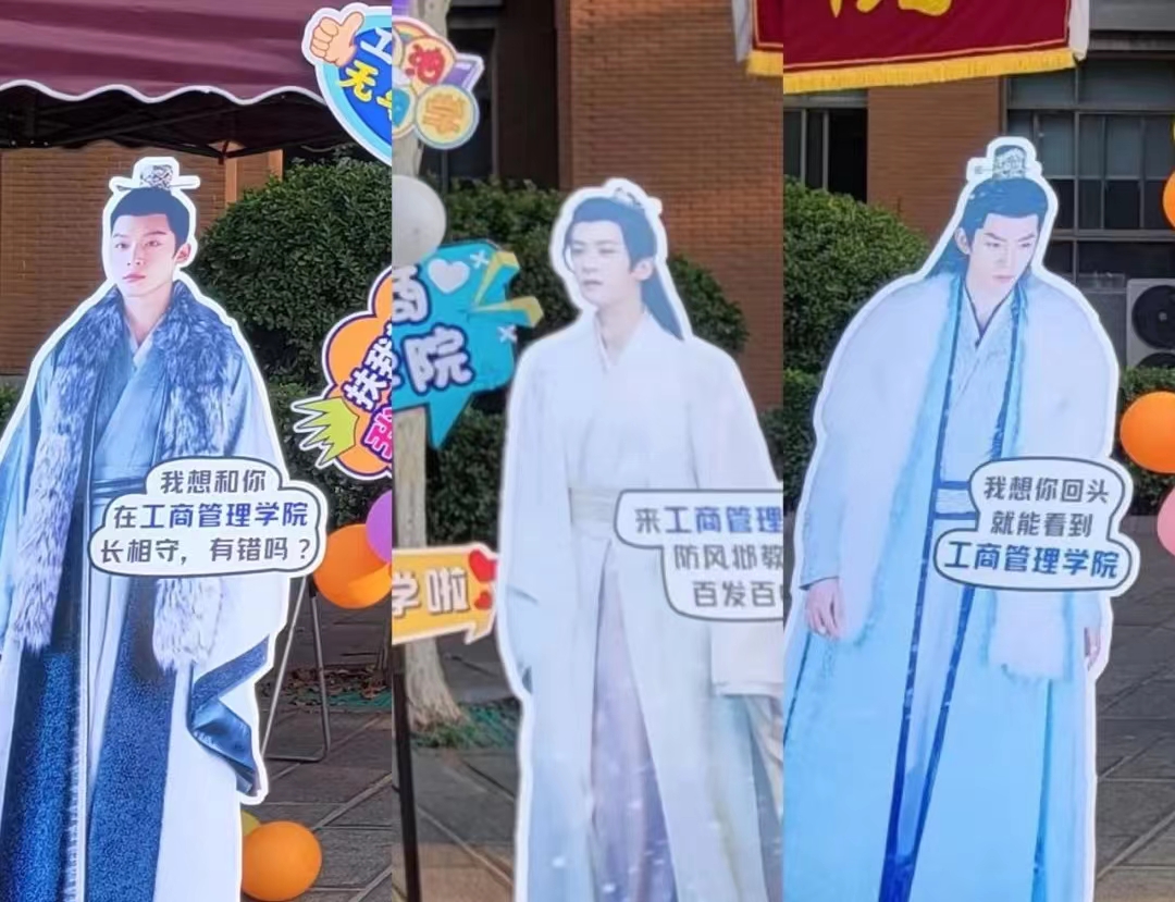 “工商管理学院欢迎同学们返校”“欢迎新同学”“显眼包”幸运红包墙、“长相思F3”……随处可见的喜迎新生喷绘、横幅、电子屏、红包墙、玩偶暖心夺目,迎新氛围直接拉满。