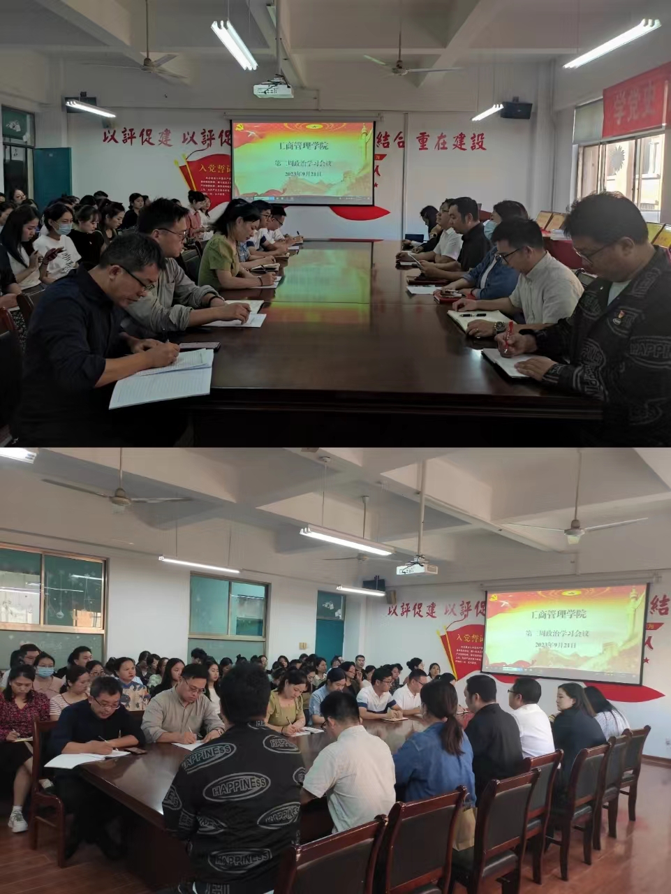 9月21日下午,工商管理学院在2号教学楼二楼会议室召开2023-2024学年第一学期第二周政治学习专题会议,工商学院院长杨松柏、党委书记宋森及全体教职工参加会议。