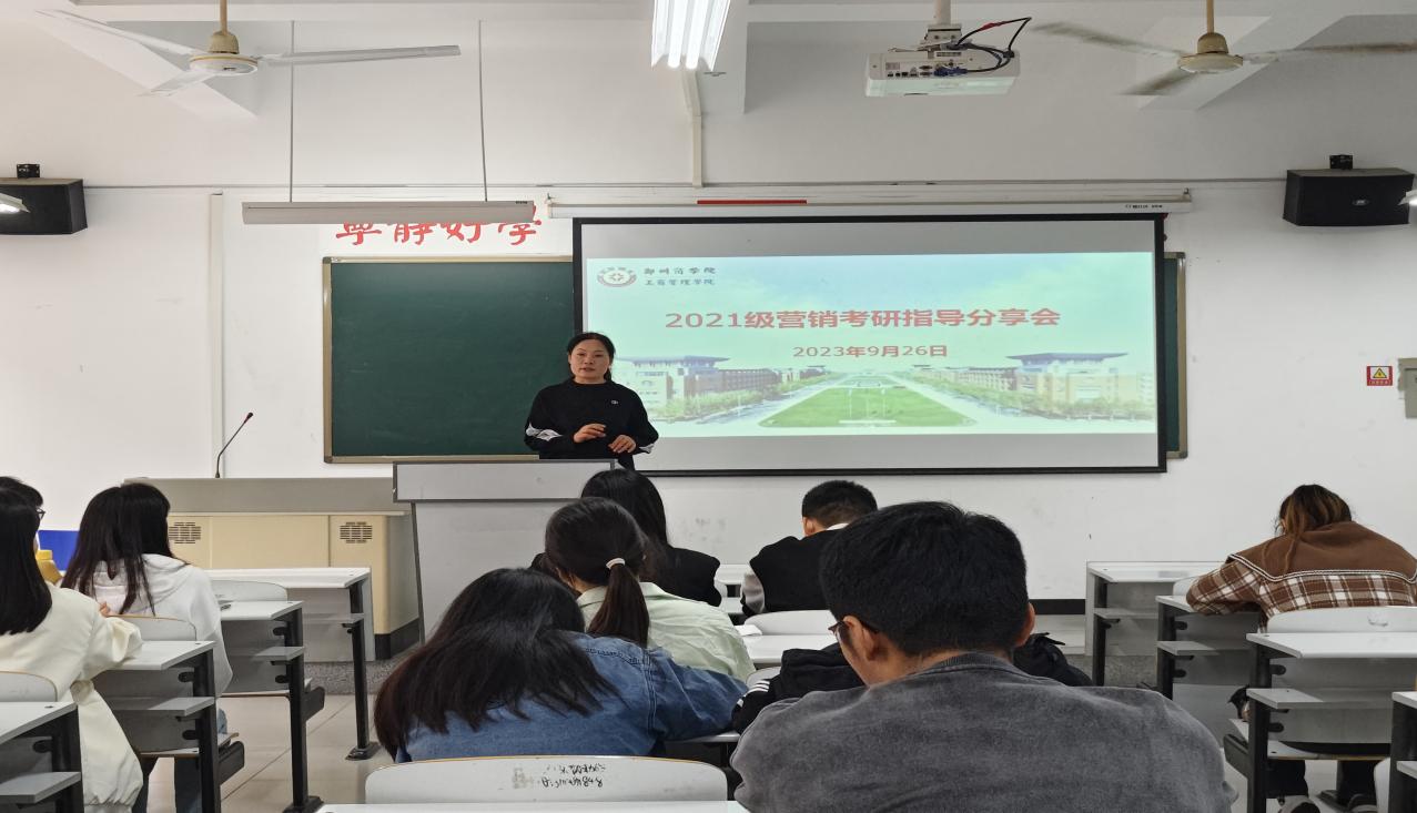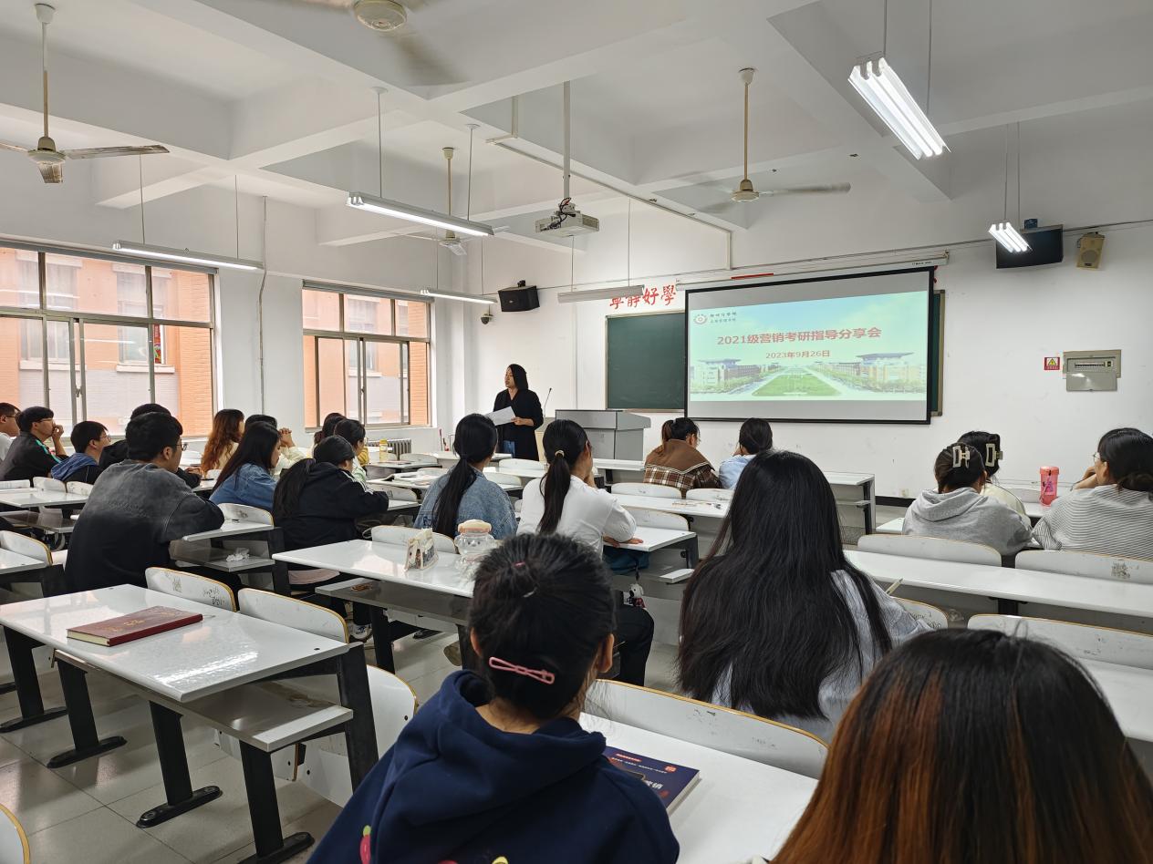 为进一步提高我院市场营销专业学生的考研意识,帮助广大市场营销专业学生明确考研方向,选择适合自己的考研院校和专业,9月25日在2号教学楼309我院成功召开了以“明确目标,科学选择,顺利考研”为主题的2021级考研院校专业指导会。市场营销教研室主任张玲燕,以及教师陈茜、许林鹏参加此次指导会,并与考研同学进行了深入的互动交流。