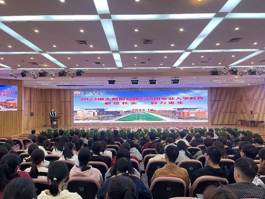 为使2023级大数据管理与应用专业新生更深入了解专业特色、培养目标,助力大数据管理与应用专业大一新生做好大学时代自我发展规划,管理学院于10月7日上午在图书馆一楼报告厅开展了大数据管理与应用专业新生入学教育活动。院长杨松柏,骨干教师苗瑞洲、孙智广,辅导员黄晓以及2023级大数据管理与应用专业全体新生参加。