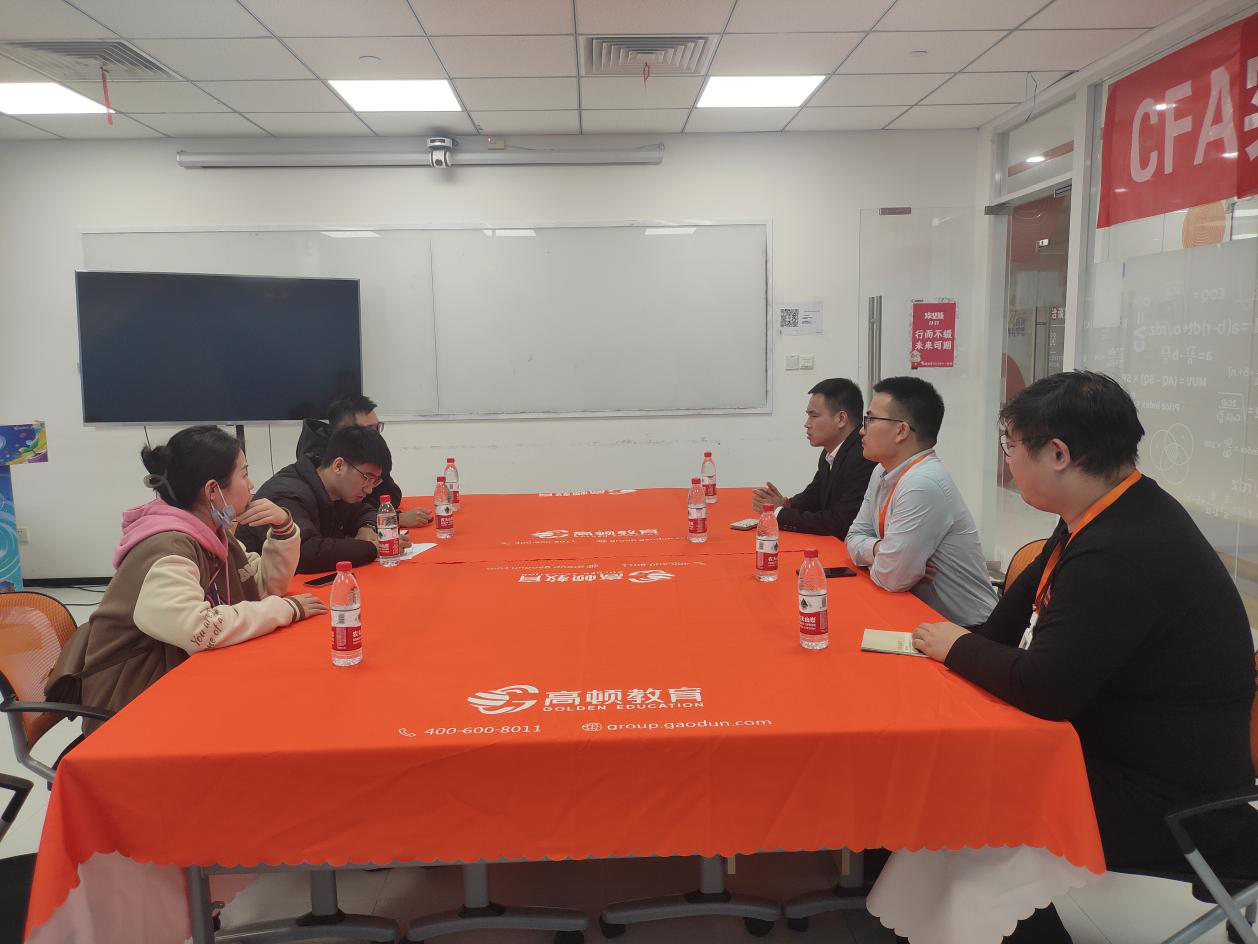 我院就业专员张老师对高顿教育长期以来支持学院发展建设表示衷心感谢,并介绍了我院学科发展、人才培养、毕业生就业形势等情况,希望双方在已经搭建的联系机制基础之上,进一步锚定合作的契合点,将合作的空间持续扩大,在学生实习就业、人才培养、产教融合等方面开展更广泛、更深入的合作,通过校企双方联动为毕业生和企业提供双向选择平台,服务地方经济建设,助力毕业生高质量就业。