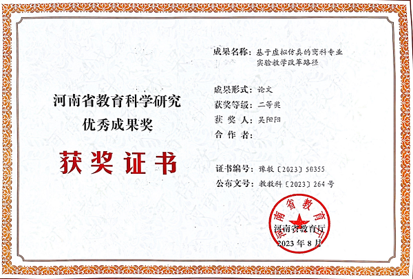 吴老师家住郑州,每天往返于学校与郑州之间。晚上孩子们入睡之后,便是吴老师静心做科研的时间。为了攻克科研项目中的某个难题,熬夜、早起成为常态。吴老师所教授的《企业仿真综合实验》课程为经管类实验课,上课专业多、学生多,有的学期每周授课量高达20课时。在这样的高强度工作下,依然没有放弃对科研工作的热爱和追求,克服重重困难,不仅将所教课程建设为河南省线上线下混合式一流课程、河南省本科教育线上教学优秀课程,在全省教育系统教学技能竞赛中荣获二等奖,更在科研工作上取得了优异成绩。在扎实的课程建设经验基础上,发表教改论文3篇,立项教改项目4项,教改重点项目1项;基于课程建设公开发表的论文《基于虚拟仿真的商科专业实验教学改革路径》,获得河南省教育科学优秀成果奖二等奖;撰写的征文《立德树人承大爱,潜心圆梦铸师魂》获河南省师德教育主题征文三等奖;主持课题《协同创新思维下河南省校地科技人才共享策略研究》,获批2024年度河南省高等学校重点科研项目资助计划。另外,主持河南省社科联、郑州市社科联、河南省社科普及规划等课题十余项,其中多项获奖;参与省级、厅级课题二十余项;公开发表学术论文十余篇。