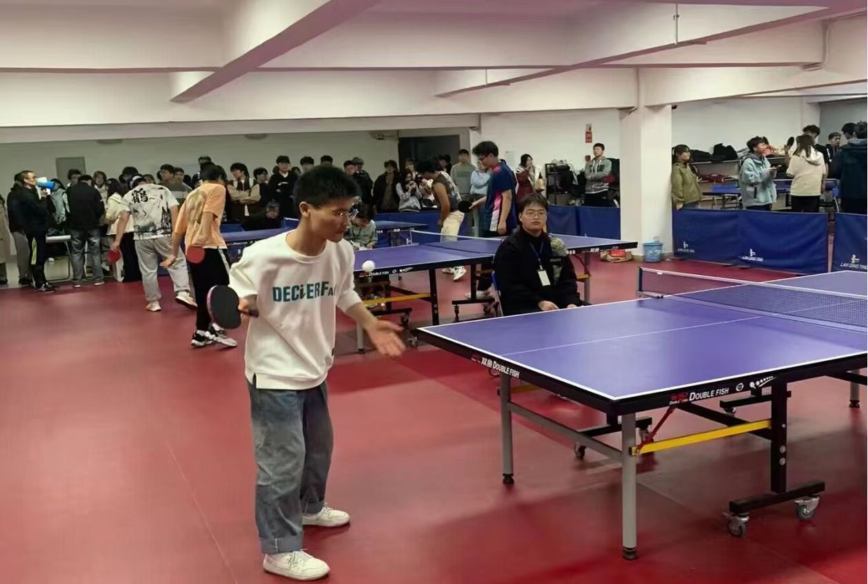 与此同时,羽毛球比赛与乒乓球比赛在体育馆激烈的进行着。经过一系列角逐,我院乒乓球、羽毛球运动员均成功晋级进入决赛!在决赛中我院运动员眼神专注,不断观察着对手的发球姿势和动作,判断着球的落点,思考着下步战术,为赢得胜利而努力着。