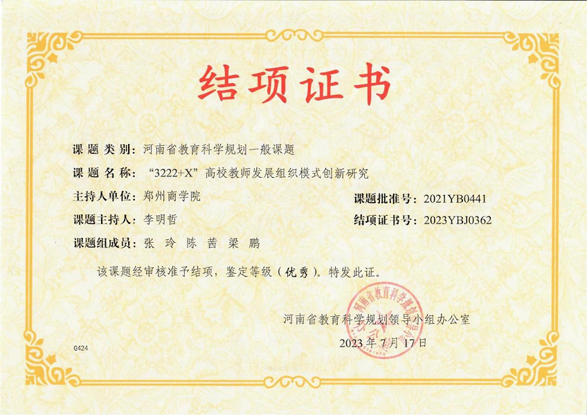 李老师一直以来立足本职工作,坚持将科研与教育教学工作实践紧密结合,致力于开展实践研究。他深知,只有将科研成果转化为实际生产力,才能真正推动学科发展和社会进步。因此,他以多年高校教师发展中心工作实践为基础,始终坚持问题导向,深入实际,不断探索新的科研方法和途径。先后以“新常态下民办高校教师心理所有权获得与工作倦怠关系研究”、““3222+X”高校教师发展组织模式创新研究”、“区域高校教师发展协同组织机制创新研究”为题目,申报立项3项河南省教育科学规划课题,研究成果两次获评“优秀”,一次获评河南省教育科学研究优秀成果二等奖。