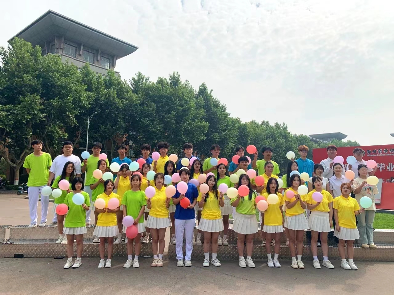 学弟学妹们带着各式的标语、手卡、鲜花、礼物,有秩序地分列在巡礼路线两侧,为学长学姐们送上祝福;毕业生们与师长、同学们挥手告别,相互祝福,再一次行走在郑商校园里。