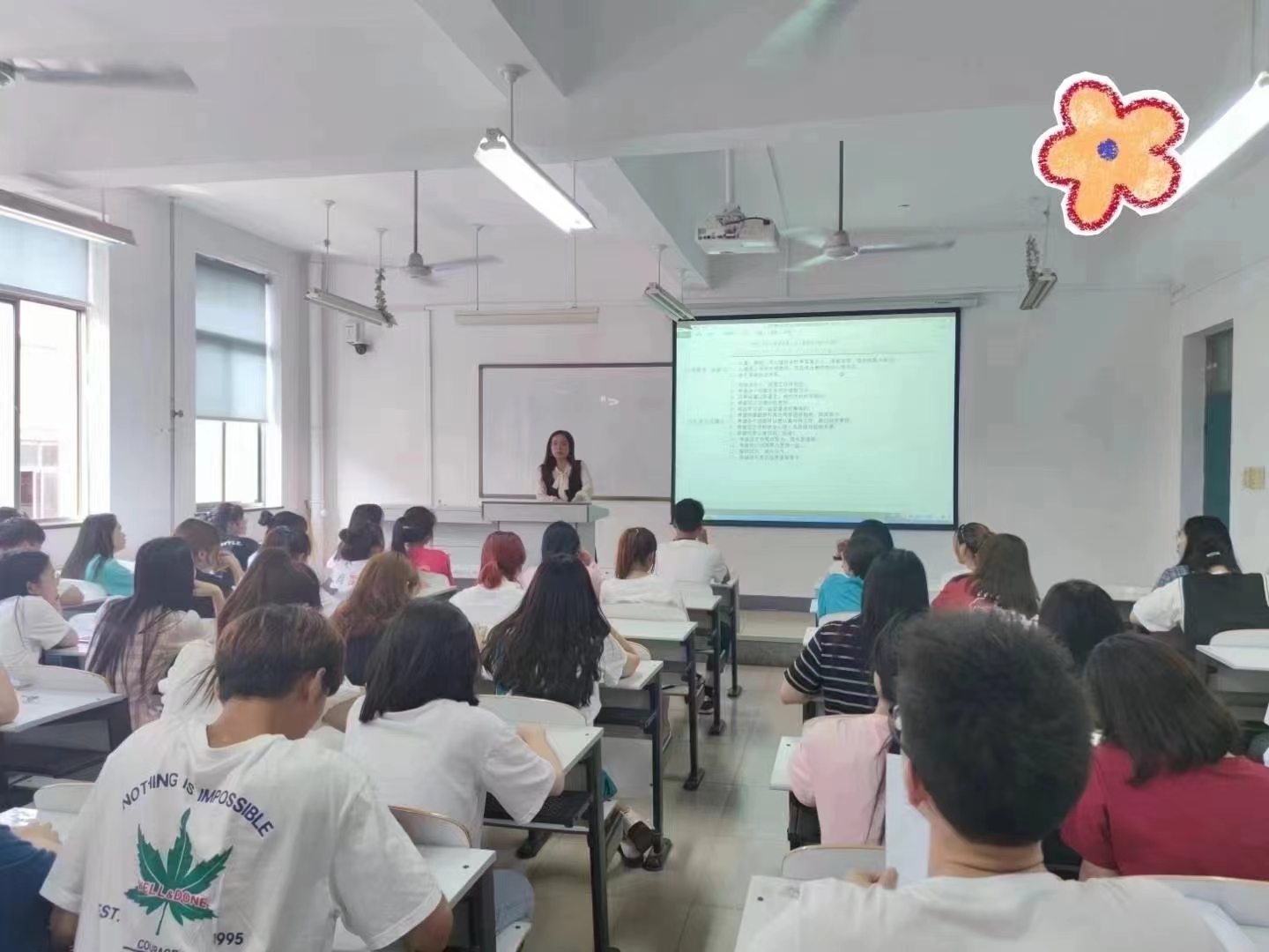 教师方阵、考研学生成功上岸方阵、优秀毕业生代表方阵从成功大道出发,依次前进。教师方阵的每位教师都手持手持风车和花朵气球,代表着对毕业生“前途似锦,一路生花”的美好祝愿;考研同学手持KT板及气球,在KT板上标明着他们成功上岸的学校名称,希望他们的未来前程似锦、扬帆起航。