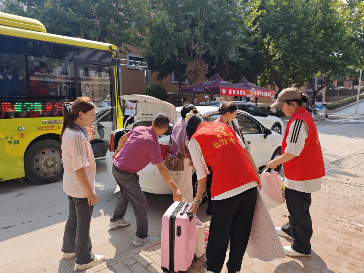 我院在摆渡车停车处、2号教学楼、北苑餐厅、8号宿舍楼十字路口和学院各宿舍楼前开设了志愿服务站点,从晨光熹微到夕阳西下,志愿者们从未懈怠,始终以最真挚的微笑和最温暖的问候迎接每一位新同学的到来。只要是新生有需要的地方,都有志愿者们的身影,校门口、宿舍楼下、摆渡车旁;志愿者们挥洒汗水,辛勤劳动,让新生们刚入校便感受到来自我们大家庭的温暖,也让众多家长感到安心省心。