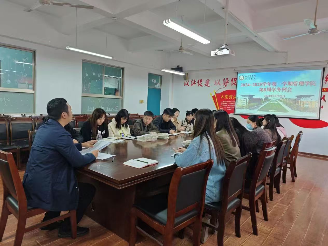 10月22日下午,我院开展2024-2025学年第一学期第8周学务例会,我院党委书记宋森、团委书记陈勇彬及全体辅导员参会。