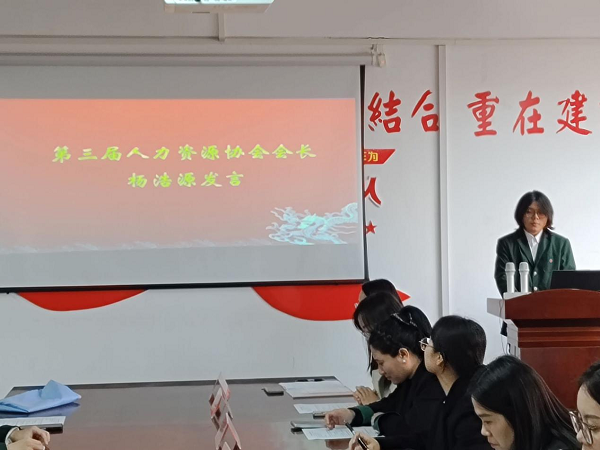 会议第二项议程是人力资源协会会旗交接仪式。在协会全体成员的见证下,第二届人力资源会长将象征着协会责任与使命的会旗,传递给给第三届人力资源会长。会旗的交接,不仅是责任的接力,更是梦想与希望的延续。