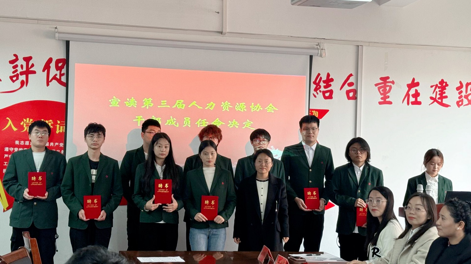为进一步提升学生专业技能,加强学生创新创业精神培养,夯实以赛促学、以赛促教、以赛促创的教育实践路径,11月14日我院人力资源协会在2206会议室隆重举行了第三届换届暨表彰大会。此次大会不仅是对过去一年协会工作成果的总结与展示,更是协会未来发展的新起点。管理学院李晓翠院长,工商管理教研室杨小彦主任、黄信恒副教授、李灵老师、郑亚杰老师,协会指导老师吴阳阳老师、宁卫杰老师以及人力资源协会全体成员参加了本次会议,会议由副会长李梦婷主持。