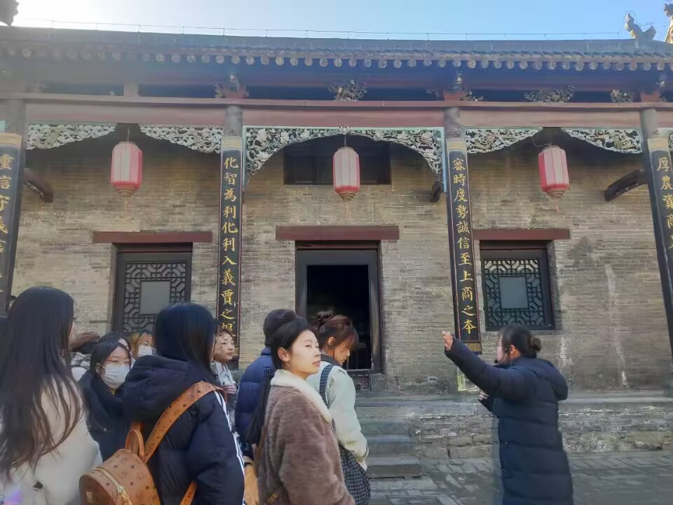在康百万庄园商学文化基地,讲解老师带领学生从庄园内的匾额、楹联、碑碍、铭箴、砖雕、木、石雕等物件讲起,讲述近代豫商代表康家商业经营的历史与荣光。让学生感受精美石刻碎铭蕴含的深厚的中华精神和民族精神,如“敦崇信义”、“人法地地法天天法道道法自然,诚则信信则交交则活活则生财”、“商道无形商道即人道,商品有形商品即人品”、“船行六河须防不世风浪,耜耕三省当思创业维艰”“扶危济困”、“家庭和睦”、“礼义廉耻”等,这些都是康家人经商为人的宝贵财富。讨论环节,同学们纷纷表示,康百万庄园是豫商精神的象征,体现了豫商的诚信、勤俭、创新、奉献等精神特质,尤其是庄园内的“留余匾”更是豫商精神的集中体现,它代表了康家先祖们勤俭节约、诚信经营的价值观,也是对当代大学生的警示和教诲。