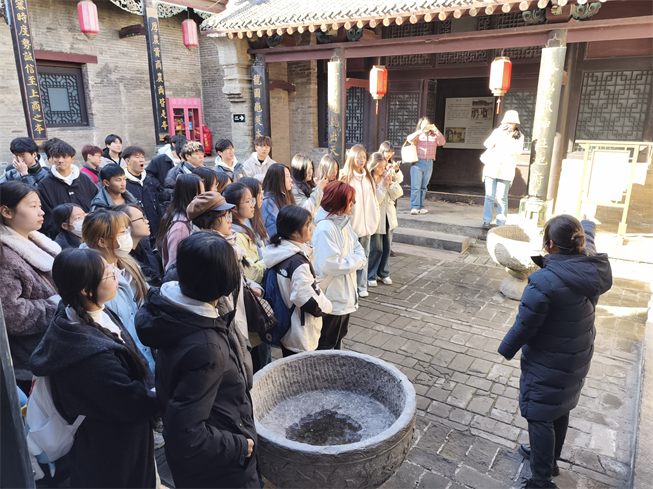在康百万庄园商学文化基地,讲解老师带领学生从庄园内的匾额、楹联、碑碍、铭箴、砖雕、木、石雕等物件讲起,讲述了近代豫商代表康家商业经营的历史与荣光。让学生感受精美石刻碎铭蕴含的深厚的中华精神和民族精神,如“敦崇信义”、“人法地地法天天法道道法自然,诚则信信则交交则活活则生财”、“商道无形商道即人道,商品有形商品即人品”、“船行六河须防不世风浪,耜耕三省当思创业维艰”“扶危济困”、“家庭和睦”、“礼义廉耻”等,这些都是康家人经商为人的宝贵财富。讨论环节,同学们纷纷表示,康百万庄园是豫商精神的象征,体现了豫商的诚信、勤俭、创新、奉献等精神特质,尤其是庄园内的“留余匾”更是豫商精神的集中体现,它代表了康家先祖们勤俭节约、诚信经营的价值观,也是对当代大学生的警示和教诲。