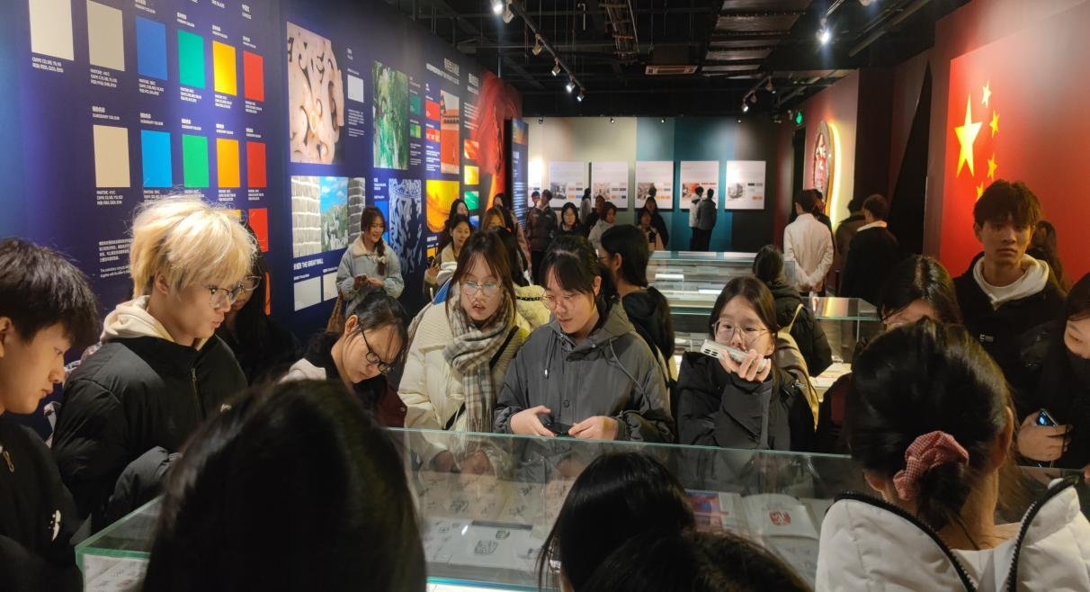 在郑州大信家居有限公司总部,在公司讲解员的引导下,同学们聆听了关于大信集团发展历程、企业文化以及未来规划的详细介绍,对企业有了初步认识。同学们还参观了公司的生产车间、研发中心和大信博物馆聚落,实地了解企业的运营管理、生产流程和经营理念。在交流环节,大家积极提问,与公司员工进行了深入的沟通交流,增进对企业和家居设计的认识。