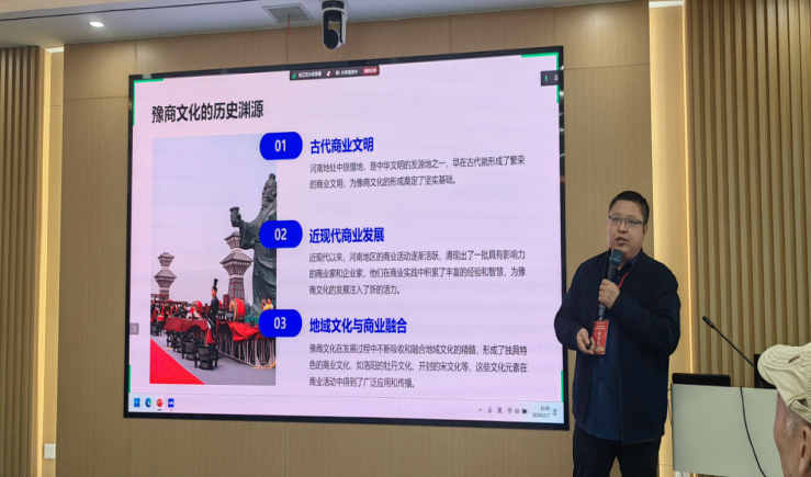 大会同时设置“商帮文化与管理创新”的15场主题演讲,演讲主题围绕晋商、徽商、鲁商、豫商、客商、粤商、乐亭老呔商帮等在管理中的实践展开。我院教师杨松柏做了题为《豫商文化在奋力谱写中国式现代化河南实践中‘豫’见未来》的主题演讲。杨老师指出,豫商文化作为中国传统文化的重要组成部分,在新时代背景下,紧密结合中国式现代化河南实践,展现出强大的生命力和创新活力。通过传承和弘扬豫商精神,豫商群体在推动河南经济社会发展中发挥着关键作用。豫商文化品牌的经济价值在于打造“诚信豫商”的商业战略,通过搭建平台,凝聚力量,共谋中国式现代化河南经济发展,共同推动中原经济区的建设,从而带动河南社会经济的发展,实现中原成功崛起。