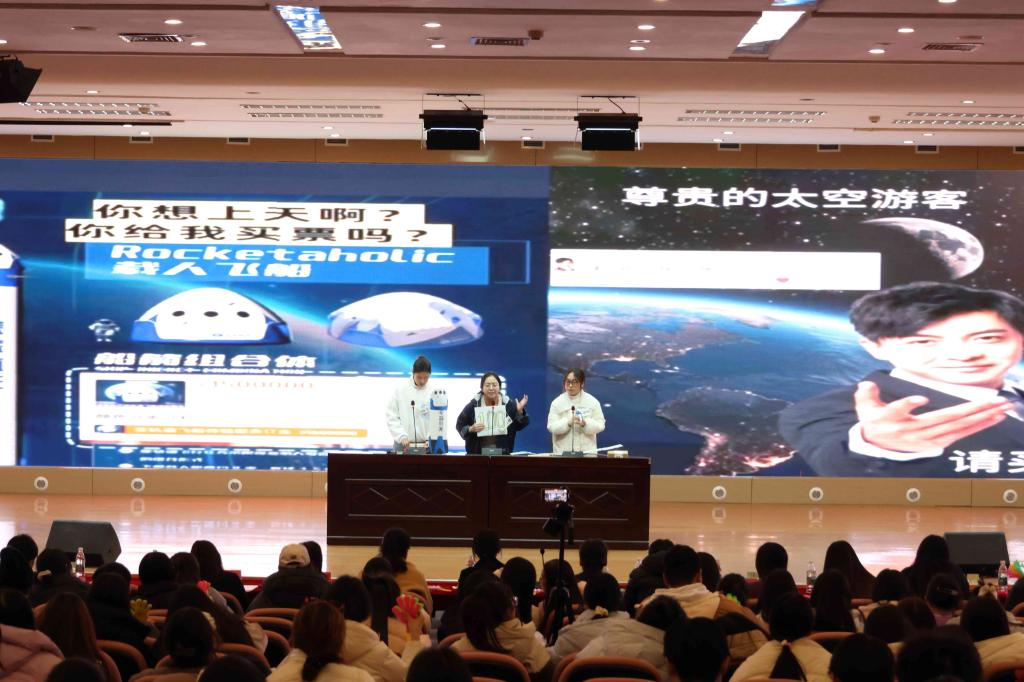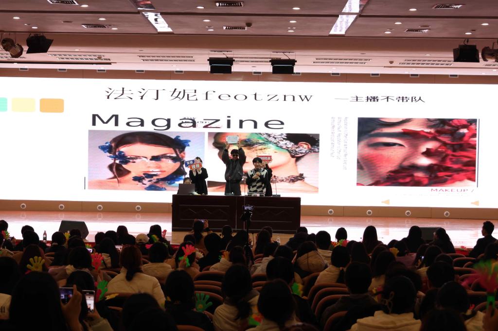 比赛环节,本次比赛围绕“青春数智,聚势We来”这一主题,由进入决赛的9支参赛队伍依次登台展示,在规定时间内运用模拟直播带货的形式分别介绍各自的产品。各参赛队伍精心准备,通过PPT及视频展示、歌舞表演、实物体验、观众互动等各具特色的表演方式和默契的团队协作,带来了美妆、洗衣液、太空船票、玩偶,以及电子产品等多样化的商品展示。成功点燃了现场观众的购买欲望,为观众带来了一场耳目一新的营销盛宴,现场掌声和欢呼声此起彼伏。同时,五位评委依据公平公正的原则,对各组参赛队伍的直播表现、产品介绍、创新创意、现场效果等多个方面进行评分,保证整场赛事的公平性、竞争性。