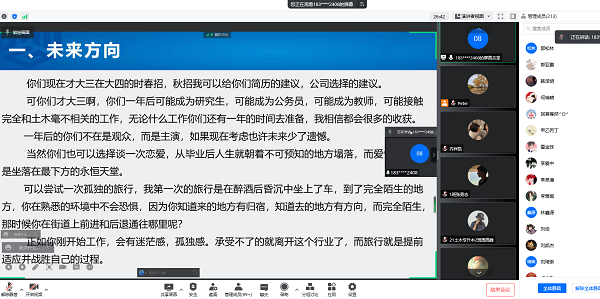 吴成龙通过未来发展方向、未来选择、以及社会上遇到的问题,全方位为同学们进行了讲解。并通过自己的从业经验自身从事的行业对土木类的专业现状以及发展前景进行详细的解读,这对同学们之后的工作提供了切实有效的就业经验。