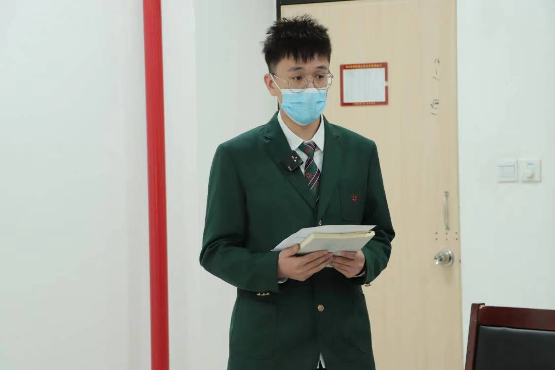 我院学生代表谢九阳同学发言。谢同学表示,中建八局新型建造工程有限公司是世界500强第13位中国建筑集团旗下中国建筑第八工程局有限公司(位列上海百强企业第7强)的全资子公司。为能够在这样优质的企业工作而深感自豪。并感谢学校及单位给自己提供这次宝贵的就业机会,一定努力把握机会,在工作岗位上用自己所学努力为企业创造价值。