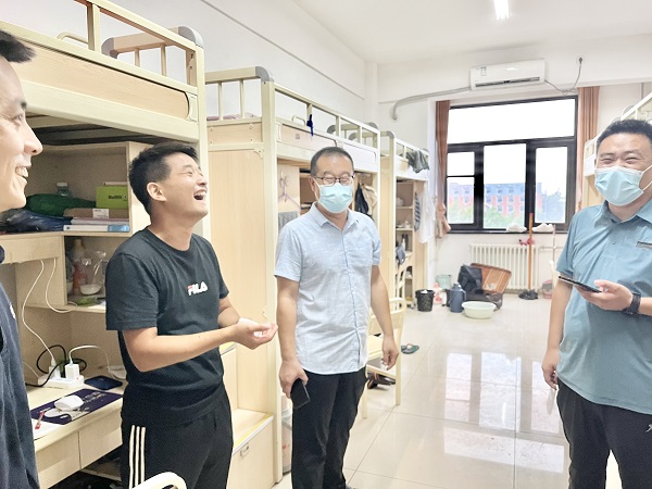 当天晚上,我院党委书记朱宏东、团委书记刘帅以及毕业班辅导员们深入第一批返校学生宿舍,与学生亲切交谈,询问了解学生居家学习生活状况和返程情况,为他们送上学院深切的关怀和美好的祝愿,并希望大家回归校园后,遵守学校常态化防控要求,调节自己,快速适应校园生活,配合做好疫情防护下的学习生活。