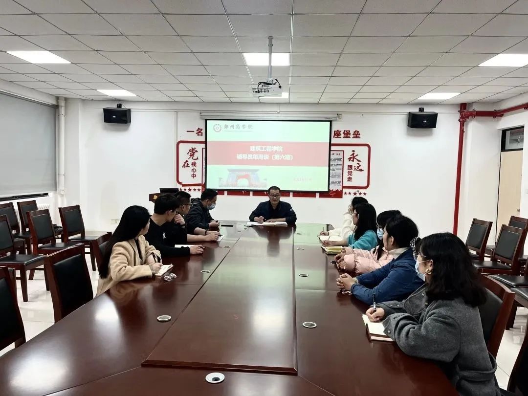 为畅通辅导员职级晋升渠道,11月22日下午,建工学院于亚泽113召开辅导员每周谈(第六期)—辅导员职级管理办法解读。建工学院党委书记朱宏东、团委书记兼行政秘书刘帅以及全体辅导员参加会议。