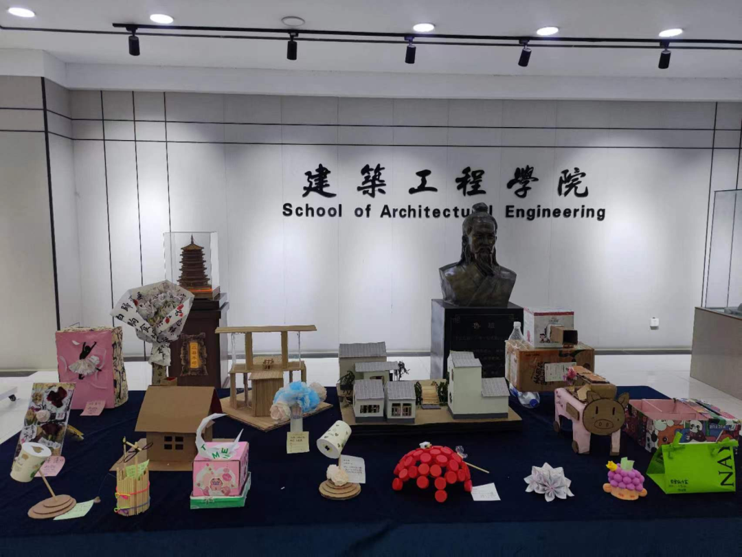 为响应习近平总书记“低碳生活、保护环境”的社会风尚,贯彻“爱劳动、懂劳动、会劳动”的劳动教育目的,培养学生的动手能力,使学生在活动中体会劳动创造美,劳动的过程蕴含美,劳动的果实展示美,形成热爱劳动的美好习惯。建工学院自5月初就开始广泛号召同学们利用废弃纸箱、塑料袋、塑料瓶等制作手工作品,经过前期同学们的制作,中期学院的评选,目前共从提交的74件作品中评选出了20件优秀作品,在亚泽楼一楼大厅进行展出。