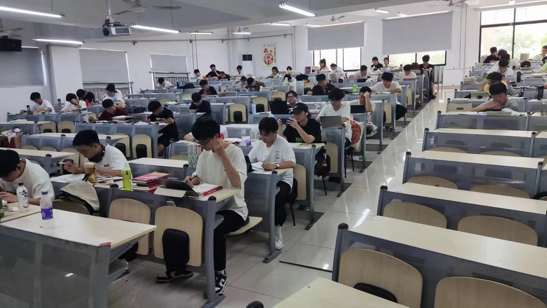 一是全面营造备考学习氛围。暑假期间,建工学院开放YZ104,YZ114教室作为学生集中复习备考自修室,为每一位留校学生指定专人专座,张贴姓名贴和爱心鼓励贴,确保学生有固定学习场所。在暑假备考期间,学院选派21位专任教师及辅导员老师全程全天值班陪护,关注学生考研备考状态,及时解决学生在校遇到的生活和学习难题,给予学生精神鼓励及外围支持。