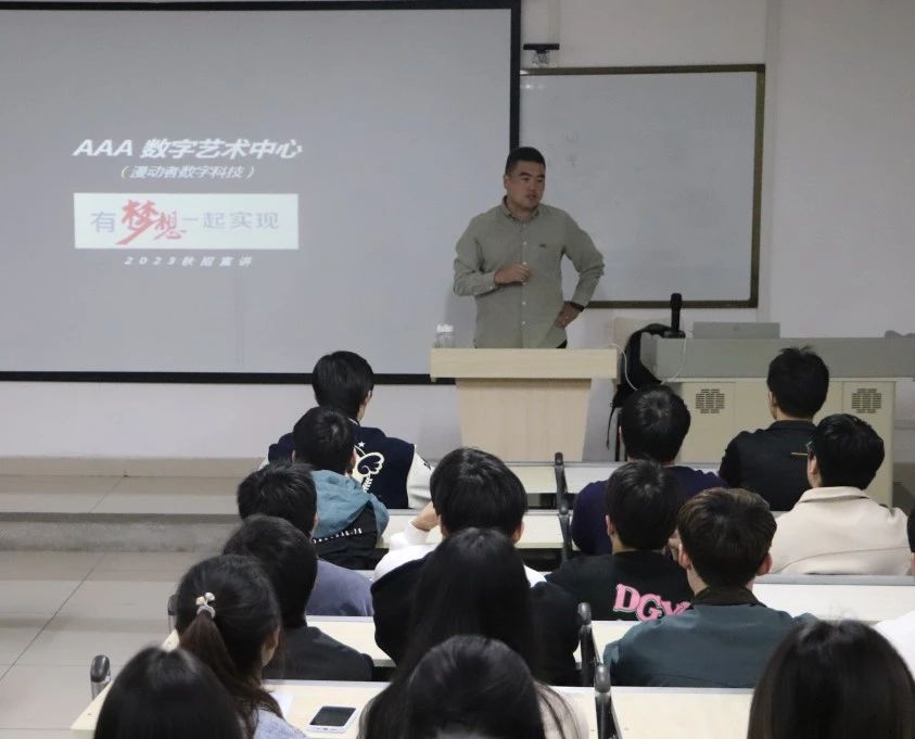 漫动者数字科技公司(AAA数字艺术中心)拥有敏锐的行业前瞻性和强大的专业技术团队,是一家集教育培训、影视制作、企业实训为一体的综合性科技集团。公司坚持“唯才任用、唯德重用、勇于创新、精益求精”的原则,为优秀的人才提供富有挑战性的机会。会上,宣讲人首先向同学们介绍了公司概况、企业文化、发展理念、工作环境等内容。接着,宣讲人详细介绍了公司此次的招聘需求、薪酬待遇等同学们关心的重点问题。最后,宣讲人结合到场同学的专业特质,对个人岗位的选择提供了针对性的建议和指导,让到场的同学受益匪浅。