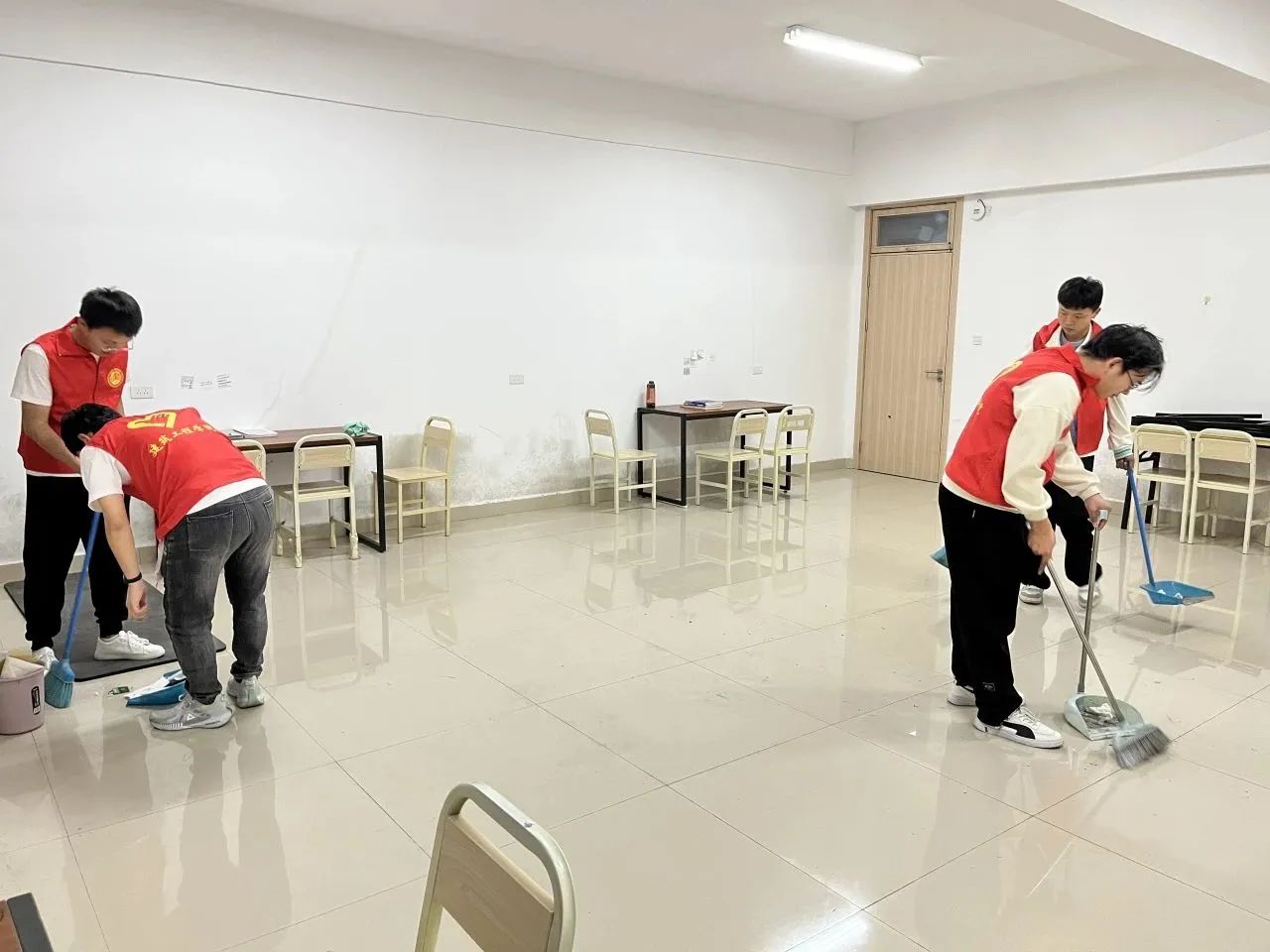 为树立文明摆放电动车良好风气,让同学们出入更加方便,志愿者们来到28号宿舍楼下摆放电动车,促使同学们养成良好的摆放习惯。随后志愿者们来到自习室和公共区域进行卫生打扫,同学们认真对待每一个卫生死角,扫地、拖地、清理秽杂一项也没落下,细致检查每一个角落,保证自习室和公共区域清洁到位。在全体志愿者的辛勤劳动下,打扫区域变得一尘不染。