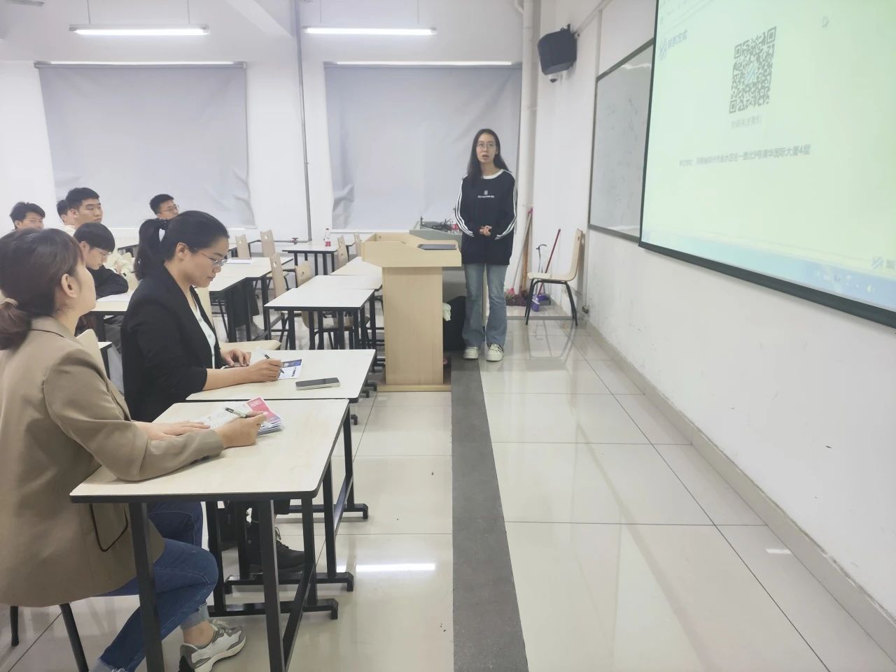首先企业招聘负责人播放宣传片、PPT,对公司进行详细地介绍,重点讲解了公司良好的文化环境、丰厚的员工待遇及人才需求状况,使同学们对源海广筑有限公司有更清晰深刻的了解。整个宣讲会气氛较好,学生们都准备好简历与企业负责人交流。最后同学们有序进入面试场进行面试,宣讲会圆满结束。