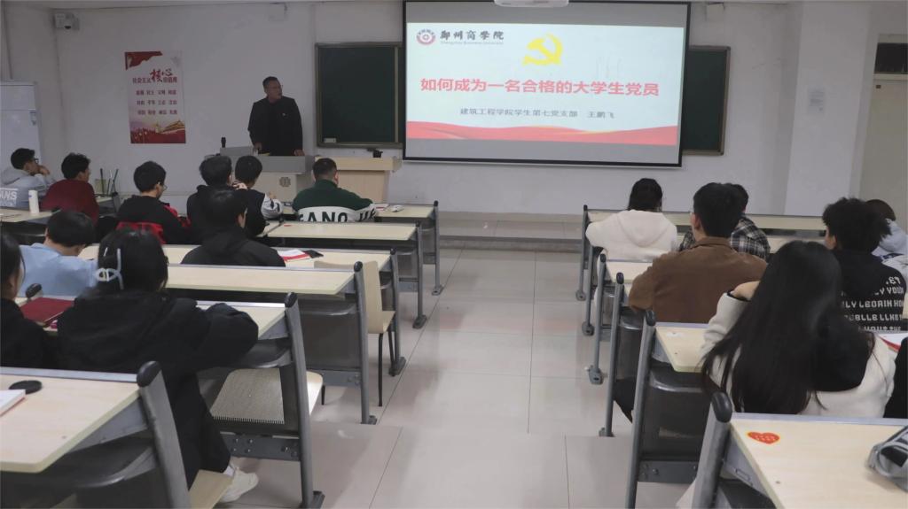 为提高第37期入党积极分子入党积极性,更好的成为一名优秀的大学生党员,11月6日下午,建筑工程学院在亚泽楼104教室开展第37期入党积极分子培训班第五讲《如何成为一名合格的大学生党员》,本次党课由我院学生第七党支部书记王鹏飞同志主讲,第37期全体入党积极分子参加。