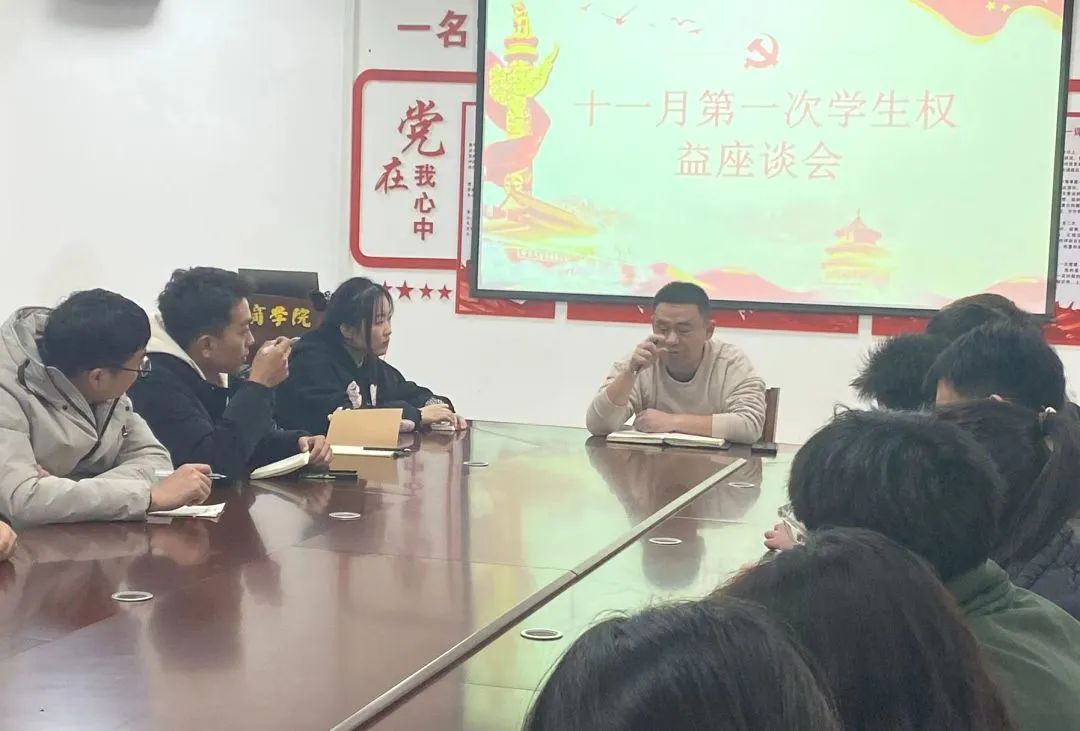 座谈会上,学生代表敞开心扉、踊跃发言,针对学习方面的不同问题进行反应和交流,同时团委权益部工作人员边听边记,分门别类。刘帅书记耐心倾听并记录了各代表们反馈的学习问题,对这些问题产生的原因、解决方案和未来规划做出解释和答复,表示会后将把大家所提的意见第一时间反馈给有关部门落实、解决。