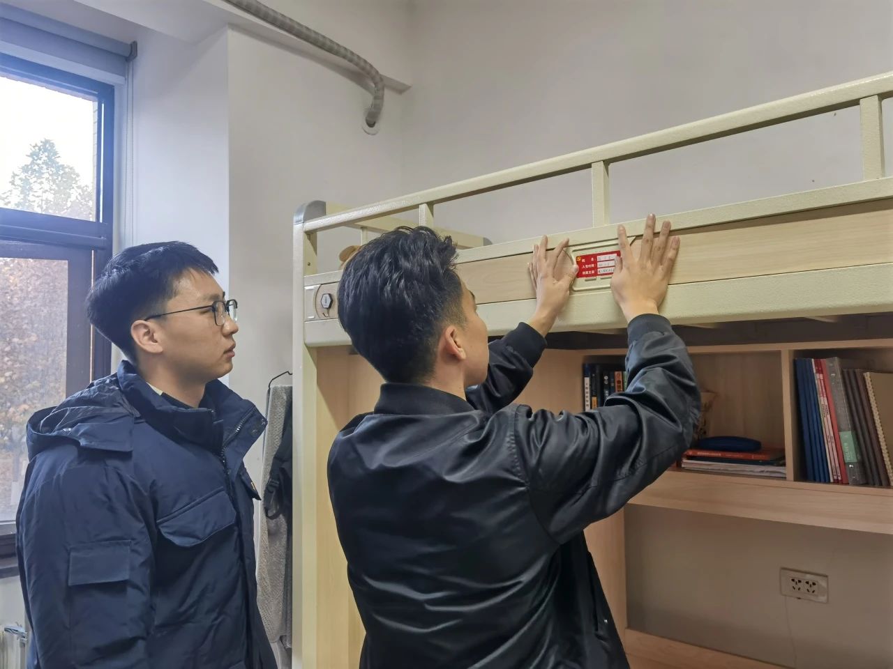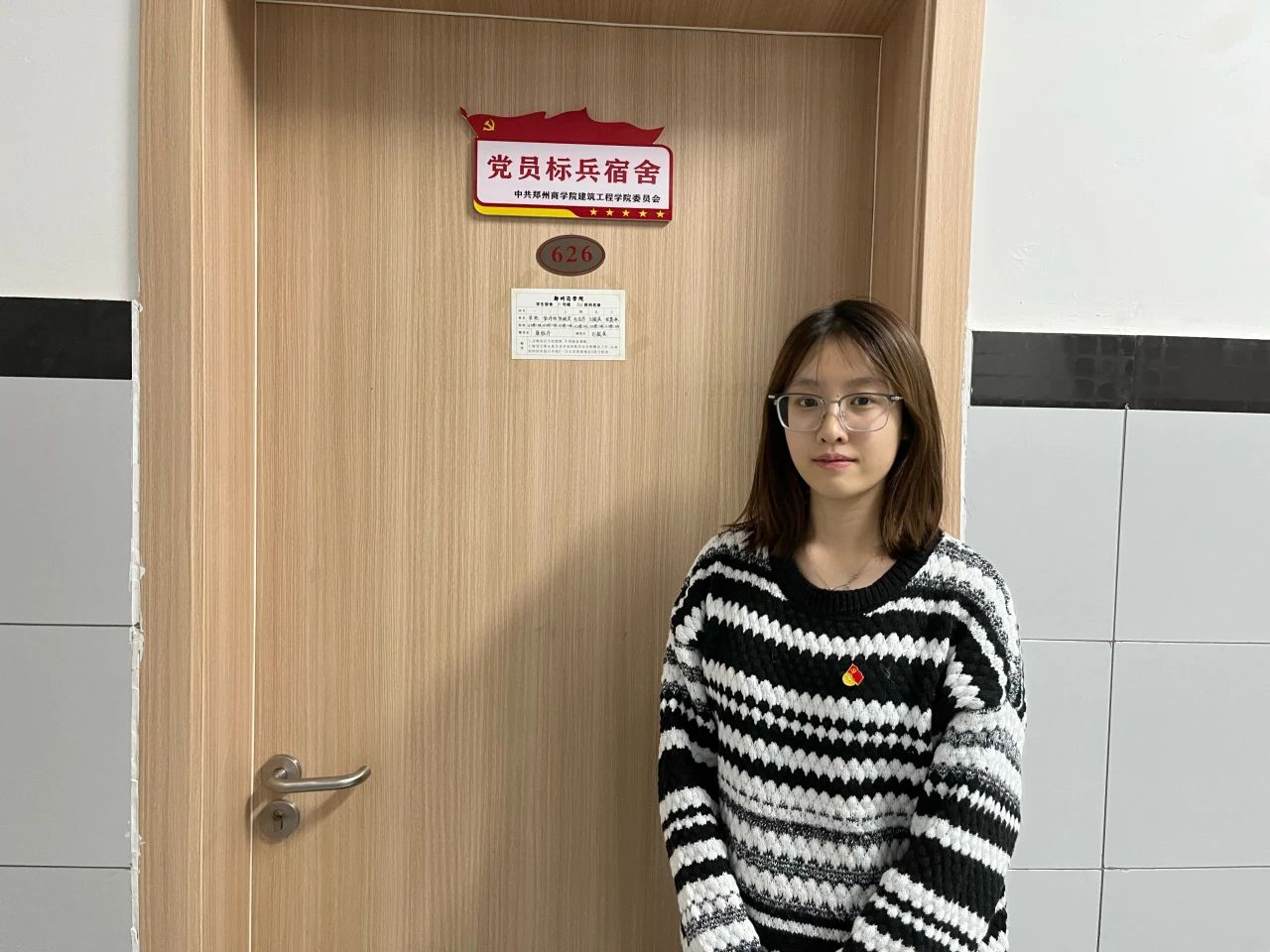 为深入贯彻落实党的二十大精神,切实发挥党建领航和学生党员先锋模范作用,近日,建工学院党委集中组织学生党支部开展“一名党员,一面旗帜”党员标兵宿舍挂牌活动。建工学院党委书记朱宏东、组织委员康雅丹及各支部书记带领志愿者分别前往8号楼、25号楼、33号楼等宿舍楼对党员标兵宿舍进行挂牌。