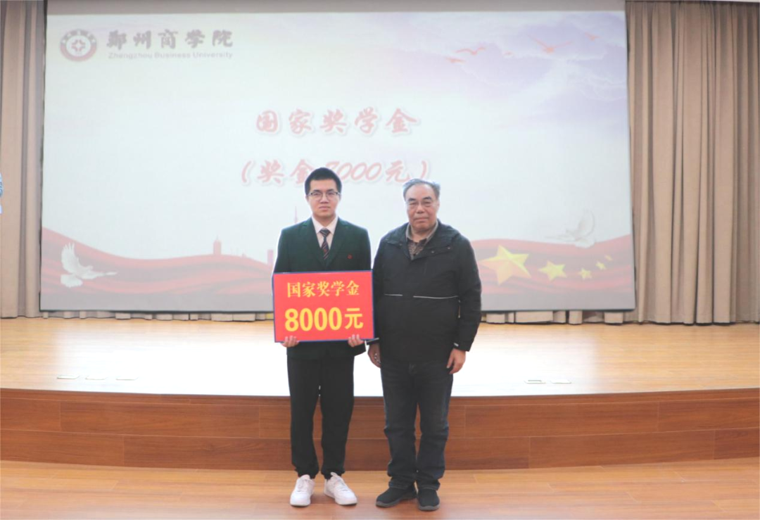 孙利民院长为国家奖学金获得者李海明同学颁奖并合影留念。