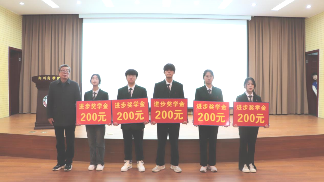 陈学兵教授为学业进步奖学金学生代表颁奖并合影留念。