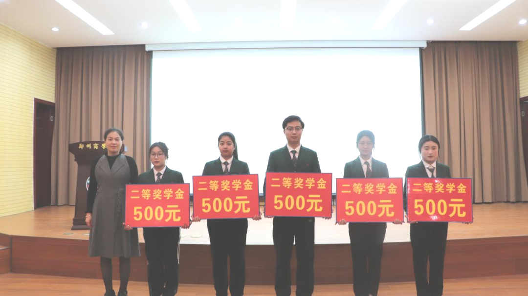 张燕燕副院长为成绩优秀奖学金二等奖学生代表颁奖并合影留念。