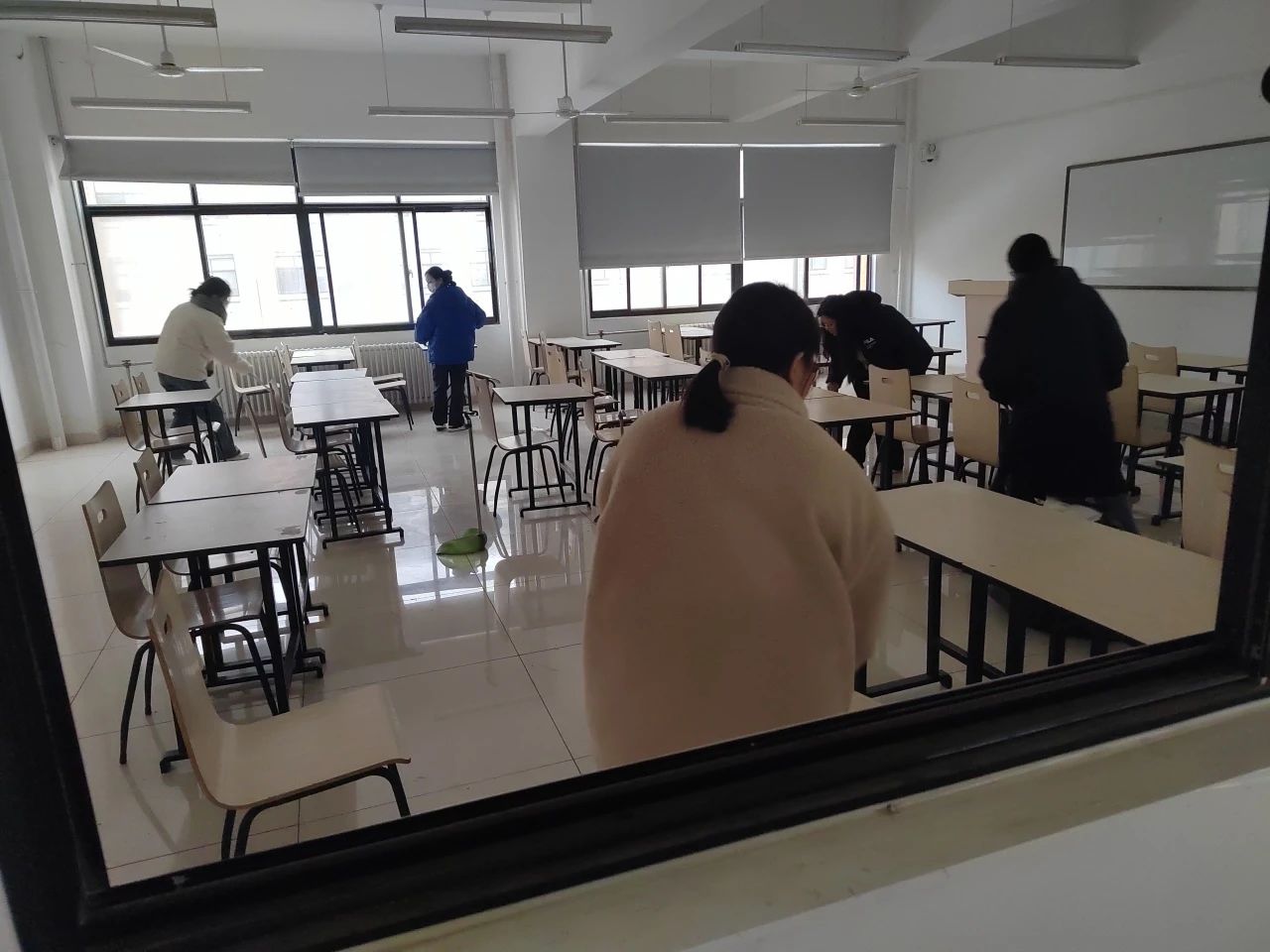 为推动我校劳动教育成功落地生效,培养学生劳动意识和劳动素养,弘扬吃苦耐劳的奋斗精神,增强学生的团体劳动意识。2023年12月25日,建工学院以四六级考试为契机,组织学生打扫亚泽大楼内考场教室。