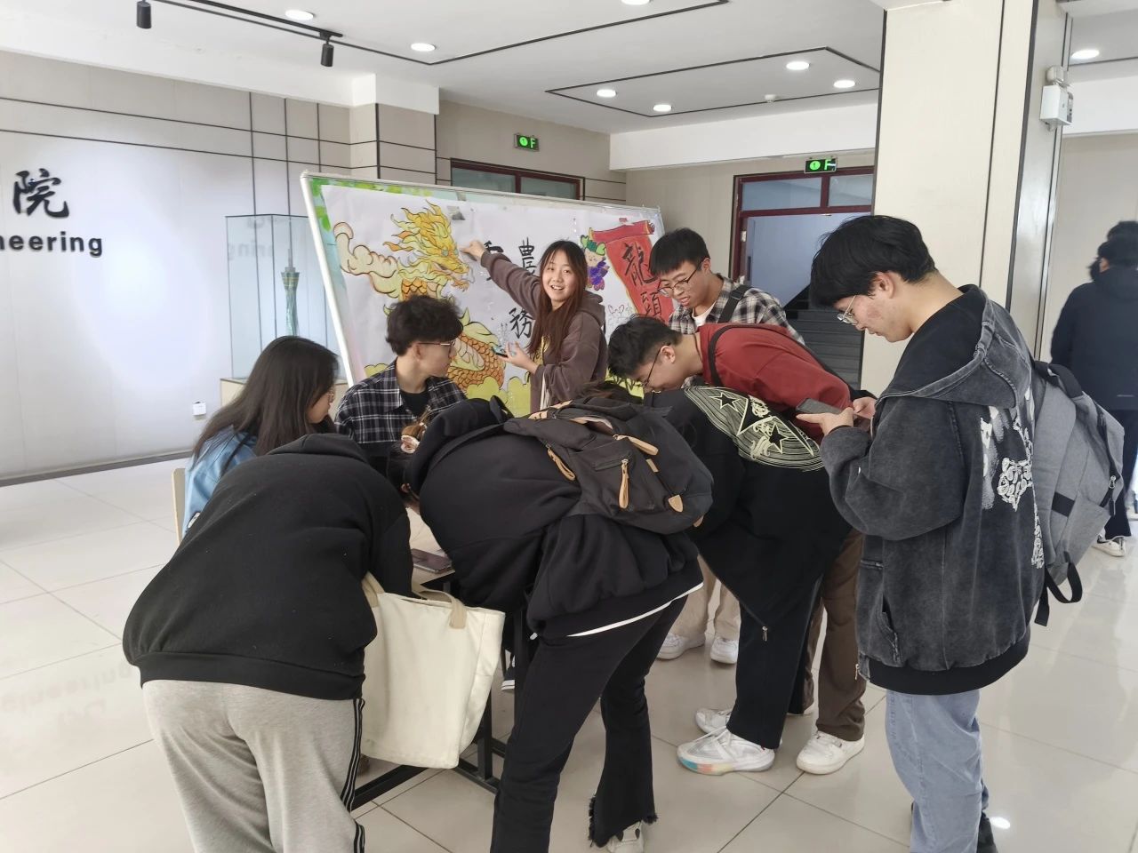 龙头节,又称“春龙节”或“青龙节”,是中国传统文化中的一个重要节日,通常在农历二月初二庆祝,标志着春天的到来和新一年的繁荣与昌盛。它是对中国古代农耕文明的赞美,也是人们对风调雨顺、五谷丰登的美好期盼。在这个美好节日的到来之时,建工学院学术部于3月11日在亚泽一楼大厅开展“重农桑,务耕田”的龙头节寄语活动。