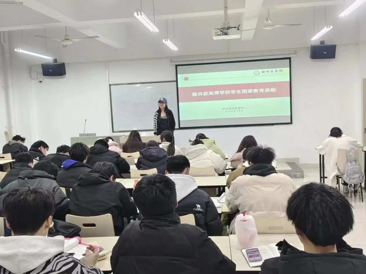 根据我院生源结构和分层分类教学开展情况,辅导员老师在认真研究解读最新大学生兵役资助政策后,深入班级对最新兵役政策进行讲解,对同学们关心问题答疑解惑。同时,为扩大春季资助政策宣传力度,辅导员老师还对国家助学金申请流程、生源地贷款与校园地贷款的区别和办理流程、校内奖助学金获取方式、国家奖学金和励志奖学金申请条件等资助政策进行详实宣讲。让每一个学生都能享受实实在在的助学政策,为家庭经济困难学生提供有力帮助。