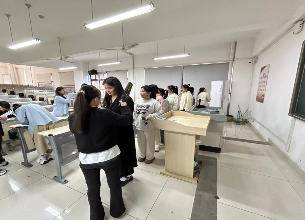崔铭月老师从专升本考试应试守则、考试用品、考试时间地点、考试纪律要求等方面进行了细致的说明,并特别强调,在法律规定的国家考试中,考试作弊不仅是行政违规,更是触犯刑事法律,希望学生严格遵守考试纪律,要知法守法,诚信考试,科学备考。同时,详细解读了“无声入场”的实施办法及考试注意事项,并组织我院全体专升本考生逐一有序进行金属探测检查,按照要求从身体正面至背面、从上到下的顺序,对考生的头部、躯干、四肢、腋下、腰部、脚部,特别是耳、口部位和鞋底等进行全面细致的检查。