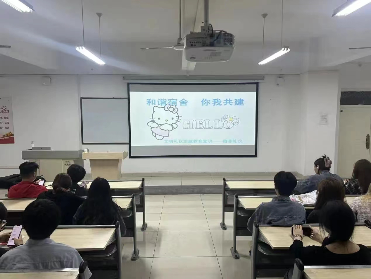 本次活动主要从宿舍礼仪概述,宿舍生活规则,相互尊重与理解,公共设施的使用与维护,个人行为的规范以及宿舍社交活动等六个方面进行主要内容讲解,让学生们清晰地认识到存在于宿舍生活每个角落中的礼仪规范。