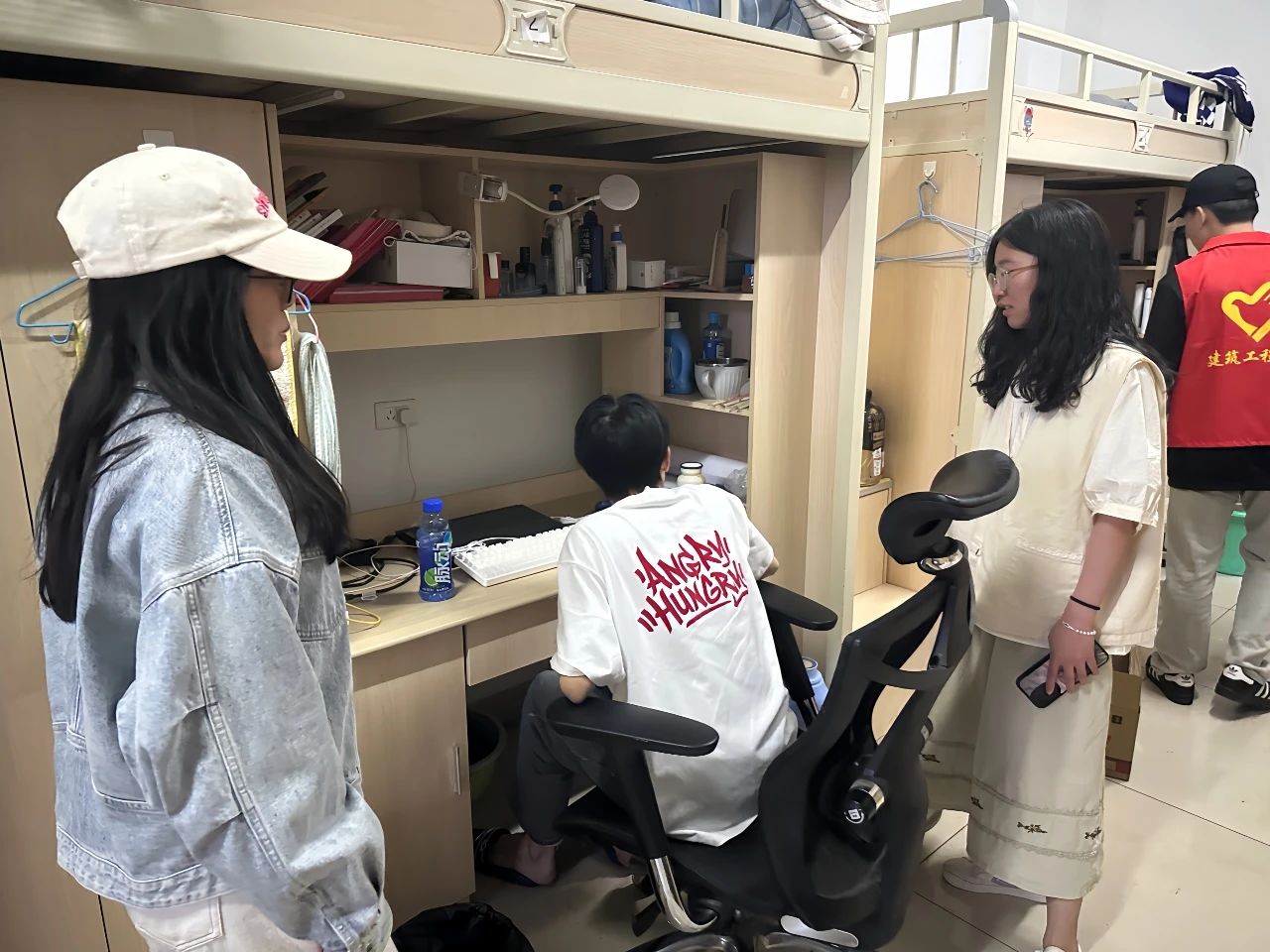 在此次查寝过程中,学生干部认真检查宿舍卫生与安全防范措施。其中重点排查违规使用大功率电器、私拉乱接电线、堆放易燃易爆物品等安全隐患和卫生问题,并提醒同学们要严格遵守宿舍管理规定。在走访过程中,辅导员老师与同学们进行亲切交谈,强调要高度重视宿舍的安全问题,同时提醒同学们夏季来临,要多开窗通风,及时打扫宿舍卫生,保障好自己的健康。