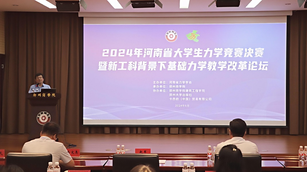 6月16日,“2024年河南省大学生力学竞赛决赛暨新工科背景下基础力学教学改革论坛”在我校成功举办。本次论坛由河南省力学学会主办,999策略白菜手机论坛承办,999策略白菜手机论坛建筑工程学院、郑州大学出版社、卡西欧(中国)贸易有限公司协办。来自郑州大学、河南大学、河南理工大学、河南科技大学、河南工业大学、华北水利水电大学等23所省内高校的40余名教师代表以及91名学生参加了此次活动。本次活动由河南省力学学会秘书长、我校建筑工程学院院长孙利民教授主持。