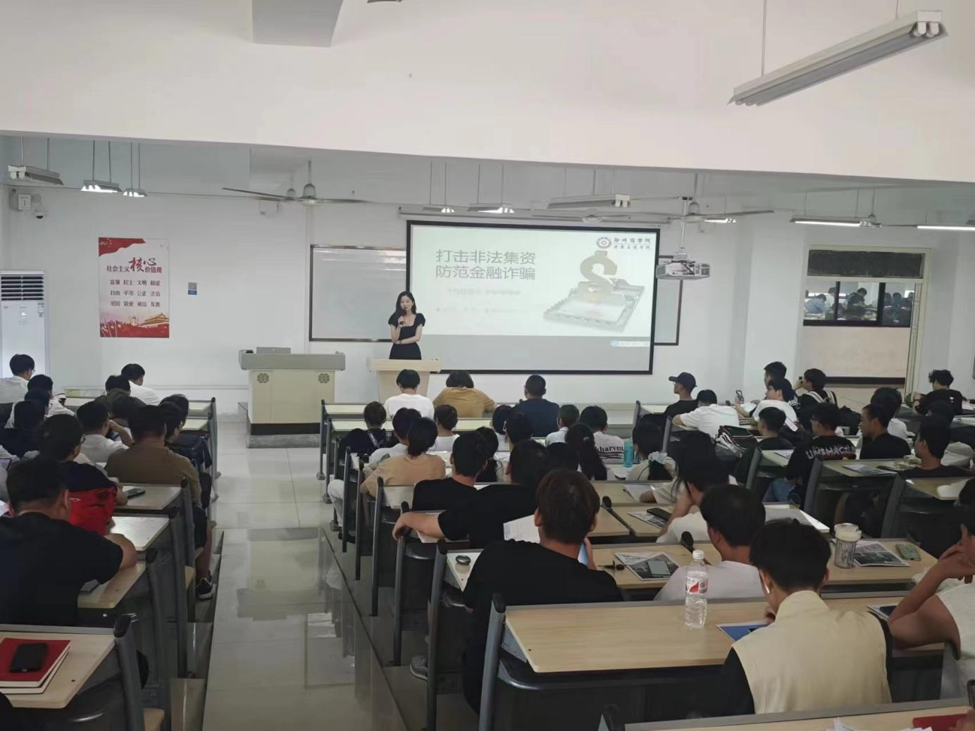首先,辅导员老师向学生普及有关于“非法集资”的相关知识,通过案例分析、视频放映、真实案例展示等方式介绍非法集资、普及防范非法金融活动知识,包括非法集资的特征、主要表现形式、常见手段以及从事非法集资的社会危害和法律后果等内容。同学们深切的了解到非法集资的危害性,增强了在社会生活和参与经济活动中识别投资渠道的能力,对不良集资有了更直观认识。