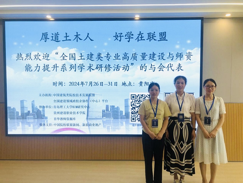 为了提升我院土建类专业的整体教育水平、加强课程思政建设、推动特色课程建设、促进教育教学改革和创新,7月26日—7月31日,院长张燕燕带领工程造价教研室主任朱歌以及工程基础兼考研教研室杨慧老师赴贵阳参加全国土建类专业高质量建设与师资能力提升系列学术研修活动。