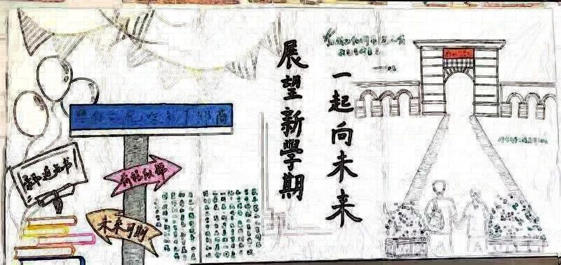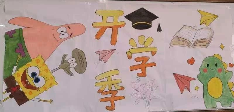 同学们大展身手,激情创造,绘制了精美的板报。单调空洞的白板被涂上五颜六色的图画,干枯了整个盛夏的教室再次迎来了他的主人们。