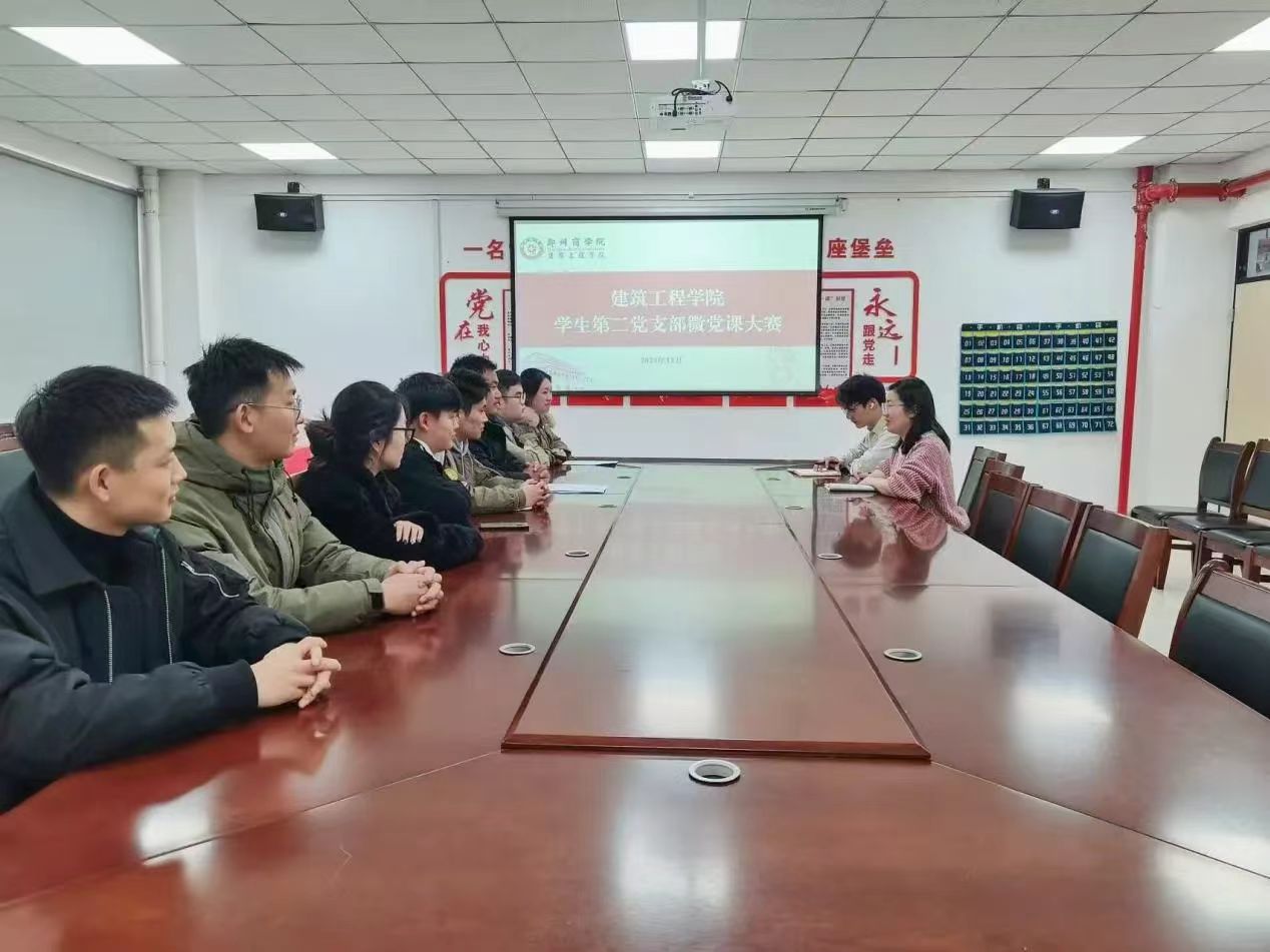 为深入学习贯彻党的二十大精神,推动习近平新时代中国特色社会主义思想深入人心。12月10日上午,我院学生第二党支部在亚泽楼会议室举办“学精神 悟思想 心向党”主题微党课大赛。建工学院第二党支部书记李莹莹老师、组织委员汤帅毅老师出席比赛。