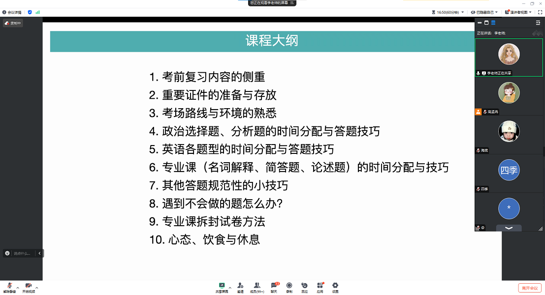 本次线上指导邀请具有丰富考研辅导经验的李老师,对考试答题时间分配、审题方法技巧、答题思路、考试注意事项、心理状态调整等给出了实用建议。