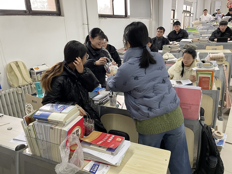 会后,学院领导、辅导员和考研指导老师深入自习室看望了备考学生,送上亲切的关怀和慰问。