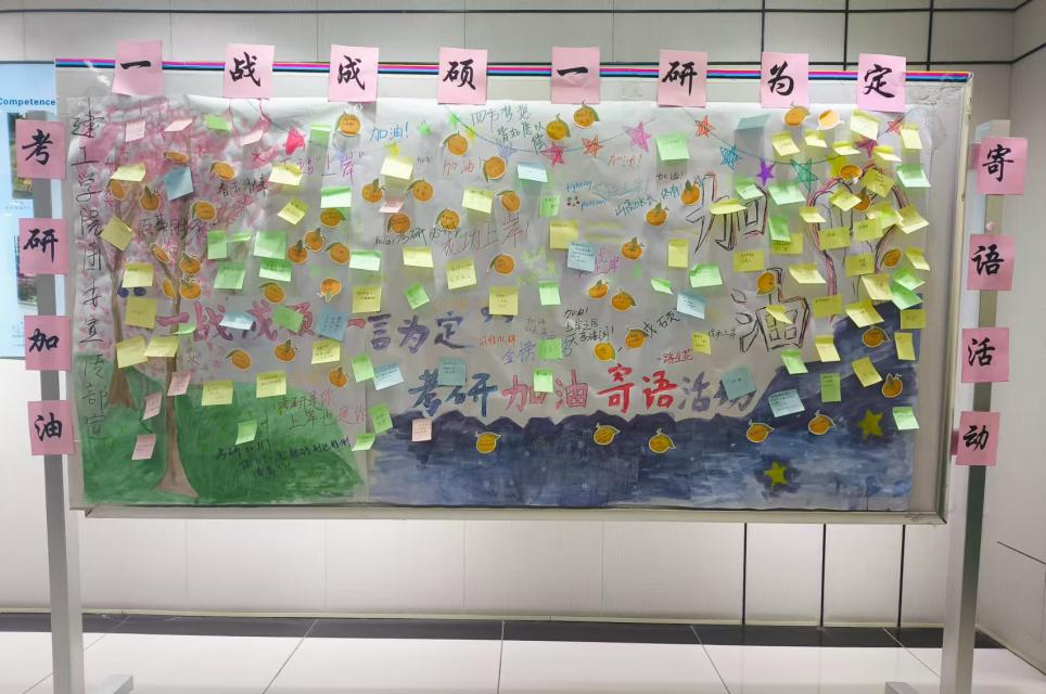 本次活动的顺利开展,不仅体现了同学们对考研学子们的美好祝福,还承载着全院师生对考研学子的殷切期盼。同学们留下的美好话语,增强了我院考研学子的信心,在日后的学习中,这些便签也会不断激励着他们自己更好的发展。