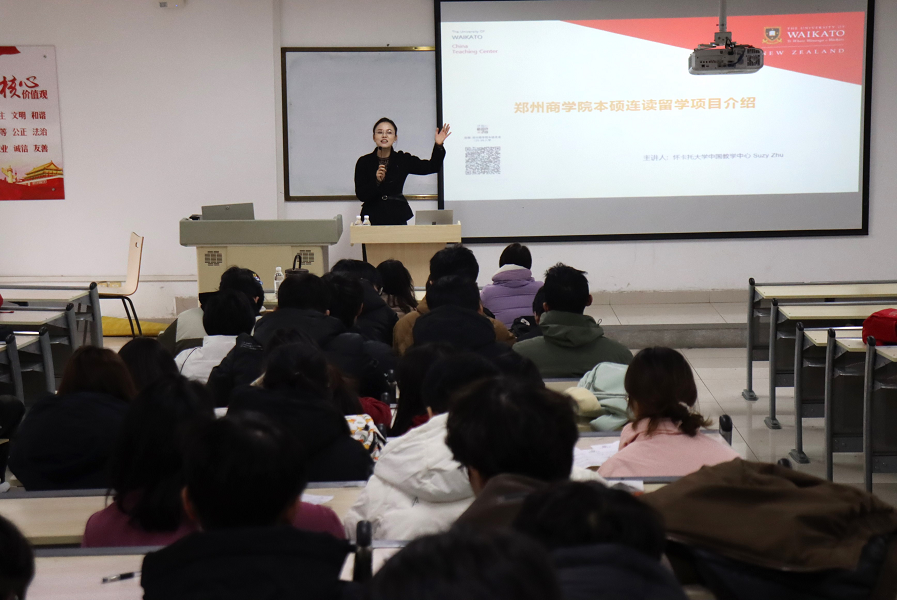 随后,新西兰怀卡托大学中国教学中心中国区负责人朱姝颖老师为学生们详细介绍了怀托卡大学中工程实践硕士、工程硕士的就业前景,通过校园特色、校园设施、特色课程、未来发展前景等多个维度,使学生清晰了解怀卡托大学的升硕项目。